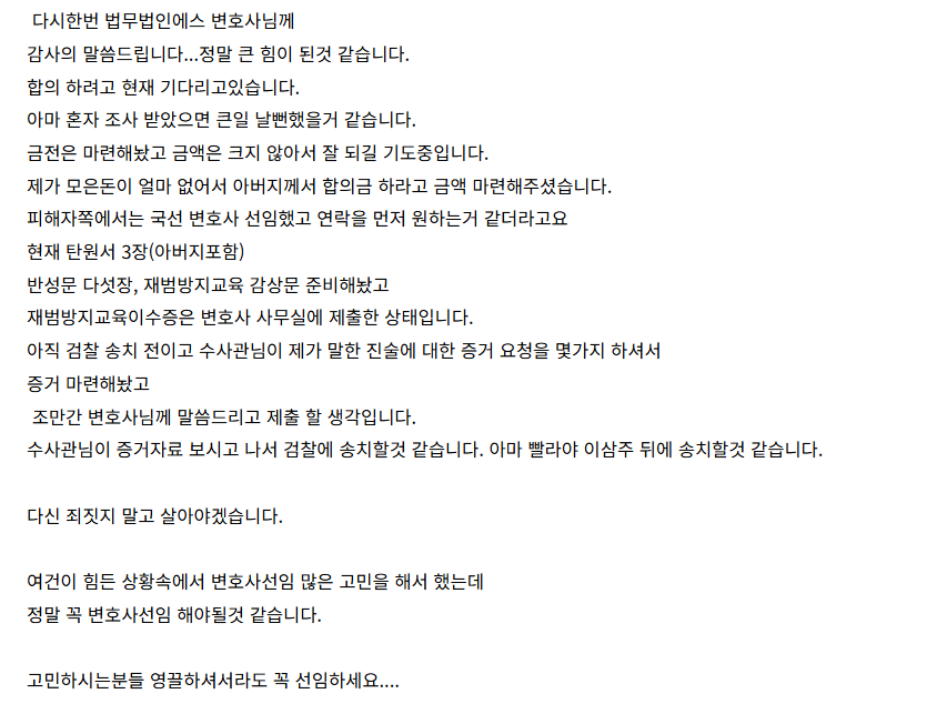 여건이 힘든 상황속에서 변호사선임 많은 고민을 해서 했는데