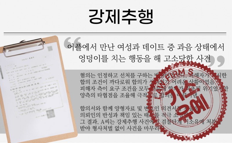 어플에서 만난 여성과 데이트 중 과음 상태에서 엉덩이를 치는 행동을 해 고소당한 사건 |