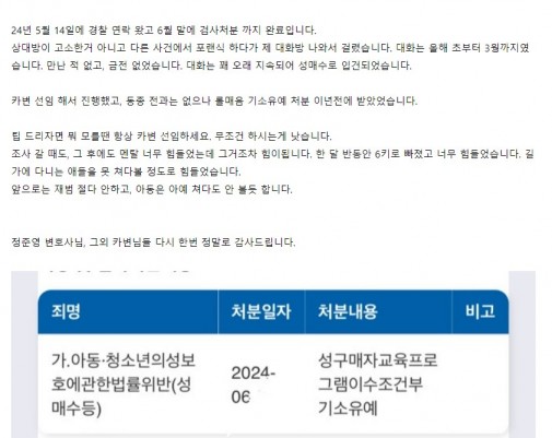 아청성매수 일반성매매로 인정, 조건부 기소유예 후기