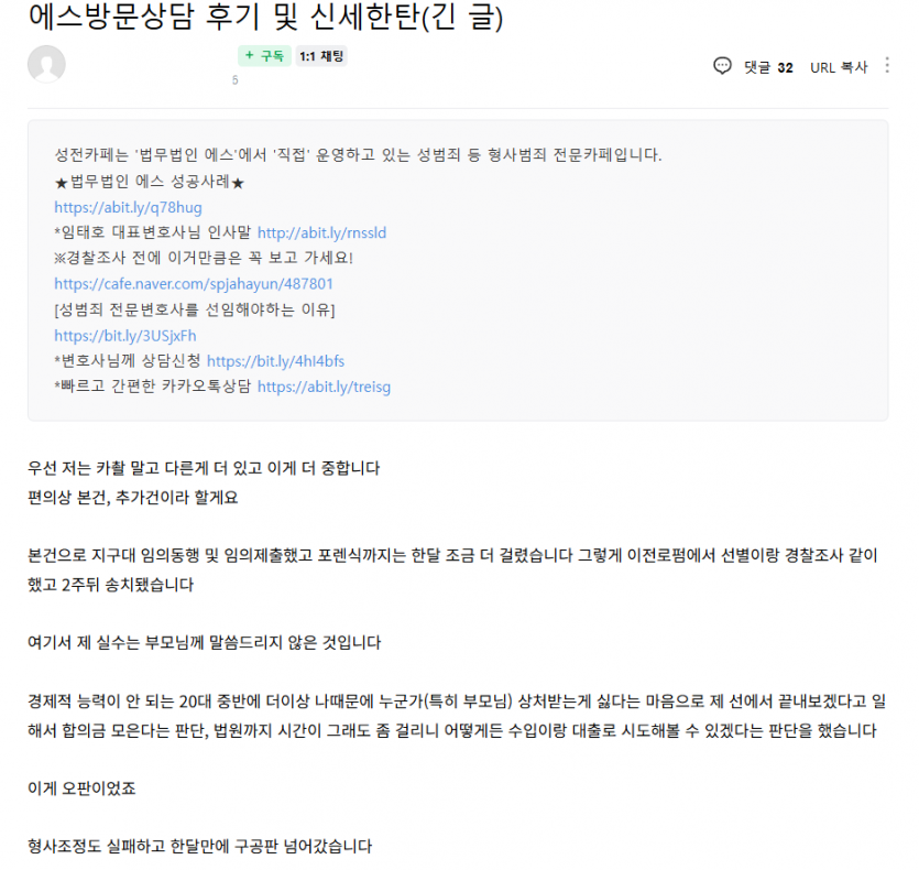 암튼 저는 이전로펌과의 계약이 수사단계까지라 종료되고 에스를 선임했습니다