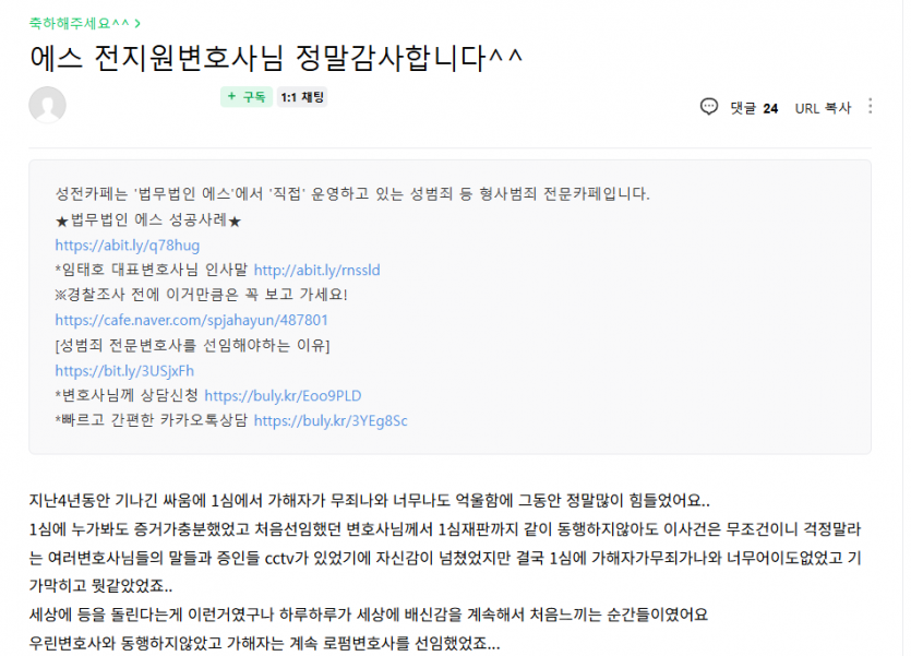 전지원 변호사님 그동안 고생도 많으셨고 항소에서 이길수있게 도와주셔서 너무나도 감사드립니다