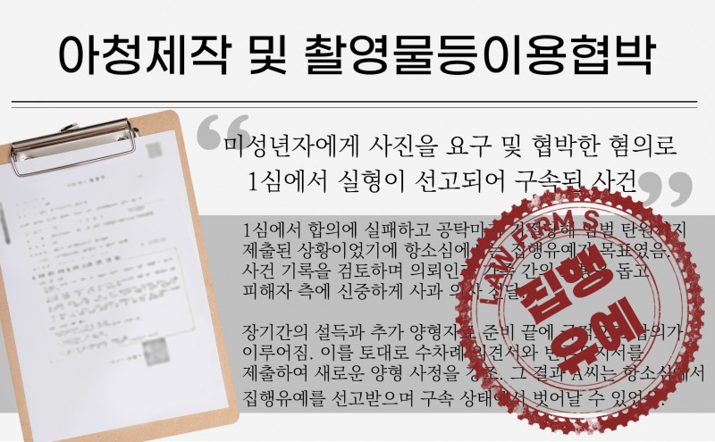미성년자에게 사진을 요구 및 협박한 혐의로 1심에서 실형이 선고되어 구속된 사건 |